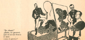 Caricatura que originó la querella presidencial. Topaze Nº 285, 1938. Fuente: Caricaturas de ayer y de hoy Ed. Quimantú.